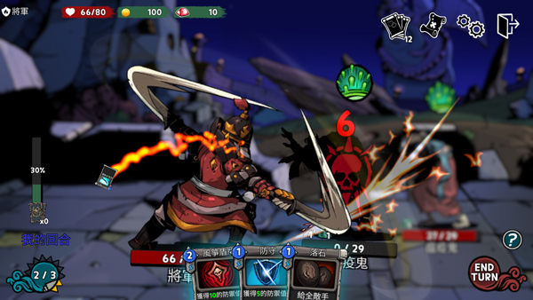 4、进入游戏如图,游戏采用了回合制策略卡牌玩法,玩家需通过卡牌对敌人发起攻击;