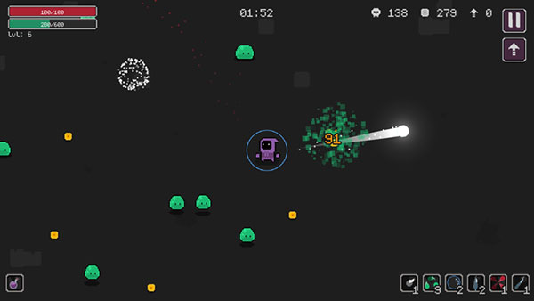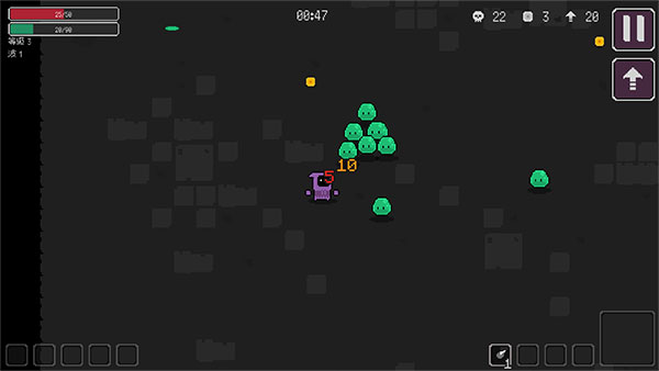 3、当我们接近蹦跳的怪物时会自动攻击,不过波数与冷却时间是控制的,所以在冷却时要注意躲避他们;