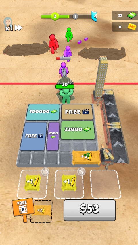 2、在不断的运输子弹的过程中前方不断的击败敌人赢取现金。
