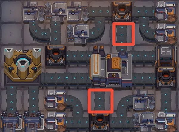 最高三级建筑(正放矿厂为2级,反放为三级,红框框中的传送带为二级,其余传送带一级,产值:0.6767):