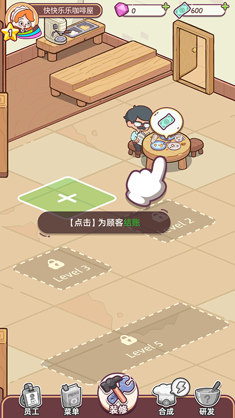 为你的顾客提供咖啡、蛋糕、甜品、三明治等一系列美食。玩的越多,就能制作越多种类的菜品!