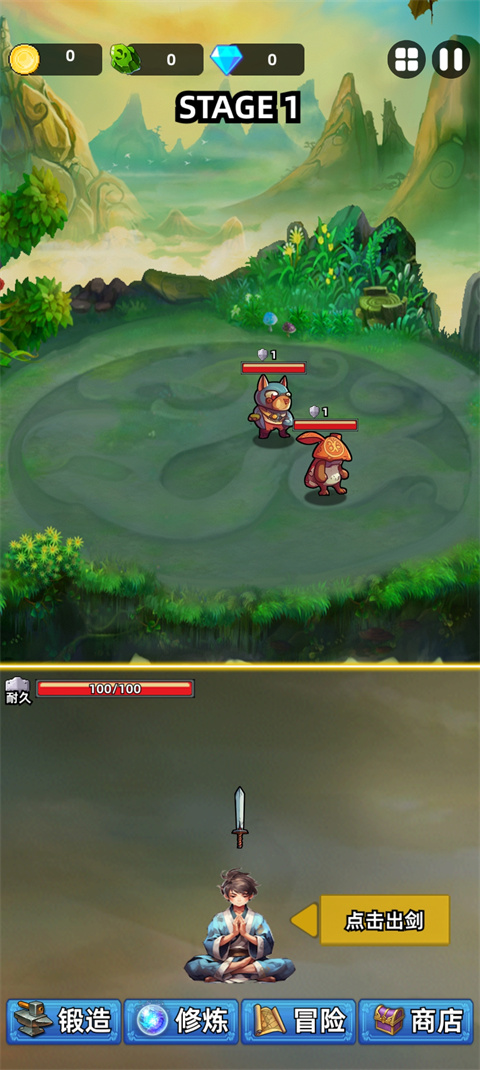 炼剑篇——闯关的话建议主培养一把剑,挂机的时候再往下培养,目前闯关剑的等级越高伤害越高,推关卡也就越强,如果休闲党的话可以均衡培养剩下的剑用来刷金币,慢慢玩