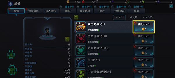 1、以超能力组合和装备效果成长角色,并进行协作模式!