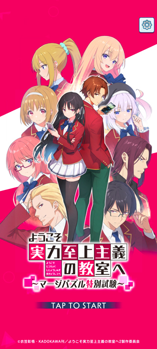 欢迎来到实力至上主义的教室官方版是一款二次元漫改合并消除休闲游戏,全称:欢迎来到实力至上主义的教室~合并拼图特别考试,该游戏由热门动漫《欢迎来到实力至上主义的教室》改编创作而来,还原了众多原著动漫角色,如绫小路清隆、堀北铃音、栉田桔梗、轻井泽惠等,更有豪华声优阵容参与配音,一比一还原原著动漫剧情,只为给玩家带来更加身临其境的游戏体验。