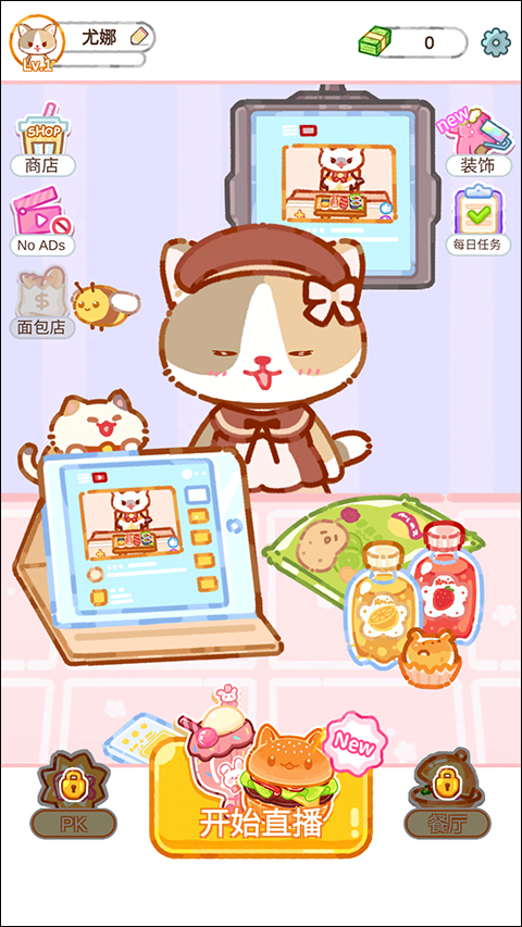1、进入珍珠奶茶大师正版游戏后我们可以选择开始直播进行主线赚钱。