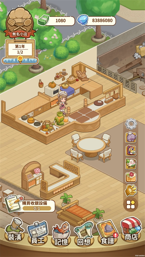 3、高度的自由度:游戏中的各种选择都由玩家自主决定,包括菜品的选择、小馆的装修、顾客的服务等。