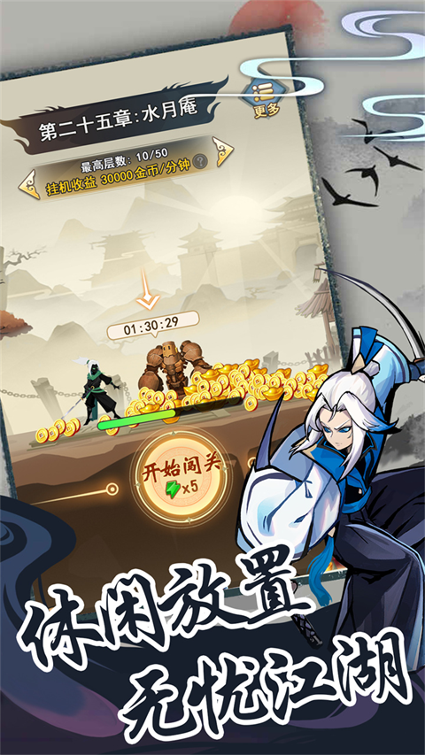 1、每通过一关,都可以任选一门功法 提升侠客属性!(已经拥有的功法才会出现哦)
