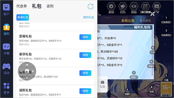 1、玩家在本站下载安装在手机上,打开游戏登录后进入礼包界面中领取礼包兑换码