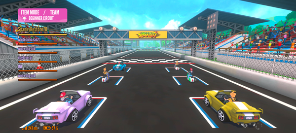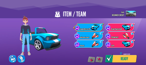 漂移,助推,粉碎与攻击/防御能力增强。在大厅世界组队-免费驾驶,8个玩家,语音聊天。
