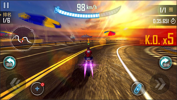 游戏中玩家可选择的机车类型繁多,从d级机车到a级机车,再到隐藏的s级机车,使玩家在收集不同赛车的同时,也能感受到不同赛车所带来的不同感受。而这10辆机车无论是外表或是性能上都有着非常大的差异,使得玩家在选择上也有很大的空间。在赛道上,从风景美丽的小岛再到夜晚的繁华都市,从高速公路的隧道再到极寒的雪山坡道。无论是哪一种赛道,都会给玩家一种置身其中美轮美奂的不同体验。