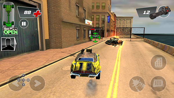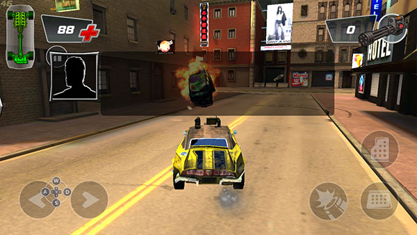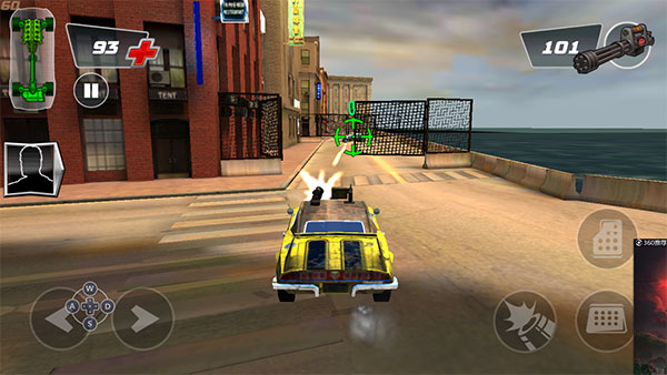 2、进入游戏后,我们先熟悉一下操作,左边控制方向,右边控制油门、刹车、以及射击;