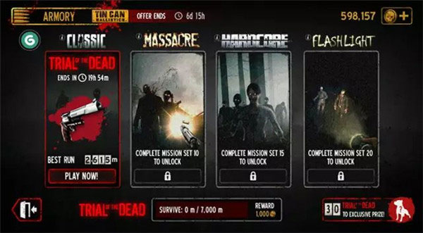 游戏分为传统模式、大屠杀模式、极端模式和闪关灯模式;除传统模式外都需要完成任务来解锁;