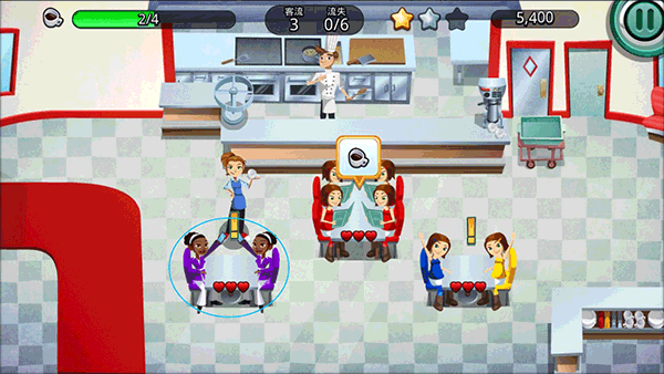 安排座位,热情服务,让饥肠辘辘的客人满意而归,赚取小费和惊喜大奖!注意迎合每位客人的特殊口味和需求,迎接全新添加的VIP客人和各种捣蛋鬼带来的挑战