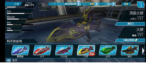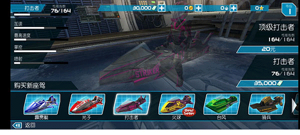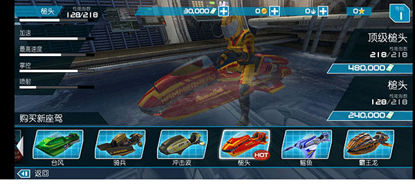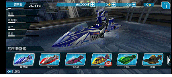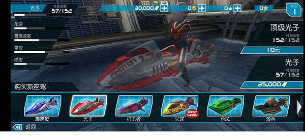 2、游戏除了基本快艇外,还新增了更加酷炫的摩托艇以及曲折蜿蜒的竞速路线,让玩家能够更加畅快的进行快艇比赛。