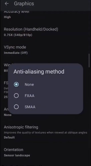 4、抗锯齿设置为None,各向异性过滤设置为 default 或 auto.