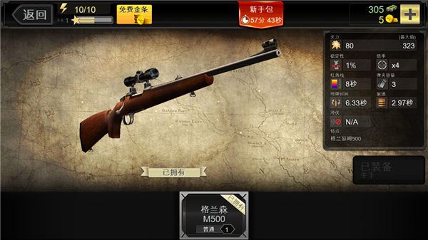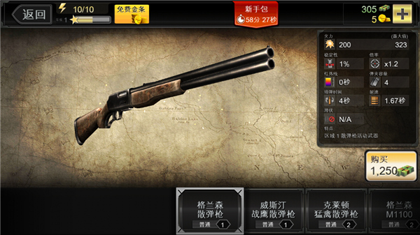 1、游戏开始前,首先你要拥有一把武器,你可以在武器商店中购买到步枪、冲锋枪、猎枪、手枪四种类型的枪支。四种枪支各有各的特色,游戏一开始,我们要用的是步枪。