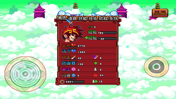 8、开启菜单后,能够详细看到角色属性、道具、技能、任务、成就以及系统。