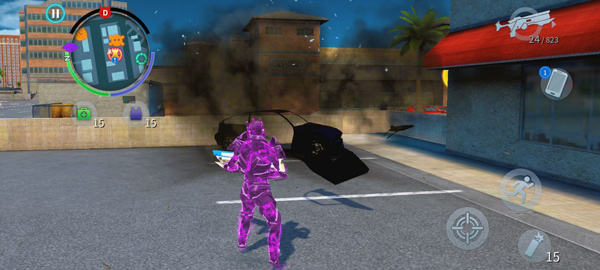 孤胆车神维加斯中文版是一款自由度超高的动作类角色扮演手游,由gameloft制作而成,也被人称为手机版的“侠盗飞车”,不仅融入了了枪战、动作、赛车等多元素玩法,还给予玩家高度自由,这里没有五花八门的规则,玩家只要根据游戏的一些提示完成任务,即可自由探索世界,可以当一个富有正义感的玩家,为民除害,消除恶势力维护社会治安,也可以在这里当一名战无不胜的拳击手打败所有前来挑战你的玩家,获取擂台至高无上的荣誉。游戏讲述的是有个黑帮的安排,你应该在年度格斗赛中获胜;但是,对手却把你痛打一顿,这不只让你输了比赛,也破坏了无恶不作的Frank Veliano 的完美计划,最后,你必须在城市里不断逃亡,在这个犯罪无所不在的城市里,你必须握紧手中的枪,加入这场史上最疯狂的黑帮混战。另外,孤胆车神维加斯游戏不管在画质、操作、还是剧情设置,都无可挑剔,就画质来说,游戏已经精细到人物表情,可见这款游戏的魅力有多大,还有一点独特之处在于游戏中的道具,不管是手上拿的枪、棍、刀等,还是道路上开的汽车、坦克,或是天上飞行的战斗机,几乎是刻画我们生活中的每一个画面。