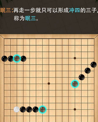 3、黑棋禁手判负、白棋无禁手。黑棋禁手有“三、三”、“四、四”和“长连”,包括“四、三、三”和“四、四、三”。黑棋只能以“四、三”取胜;