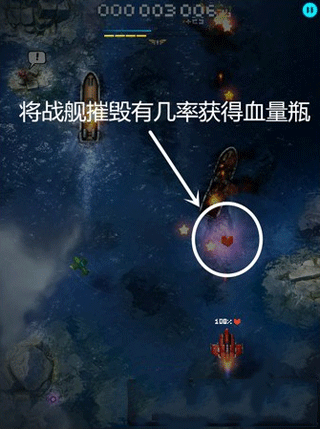补充血量的方法:击破战舰(船)有一定几率会掉落补充血量的血瓶,所以玩家如果血量不足的时候可以去打战舰哦。