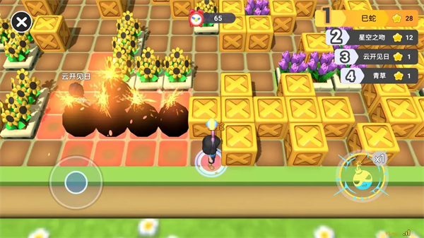 放置炸弹,在周围的箱子中找到能让我们变的更加强大的道具,小心身边的情况,炸弹可以爆破的可不仅仅是箱子。