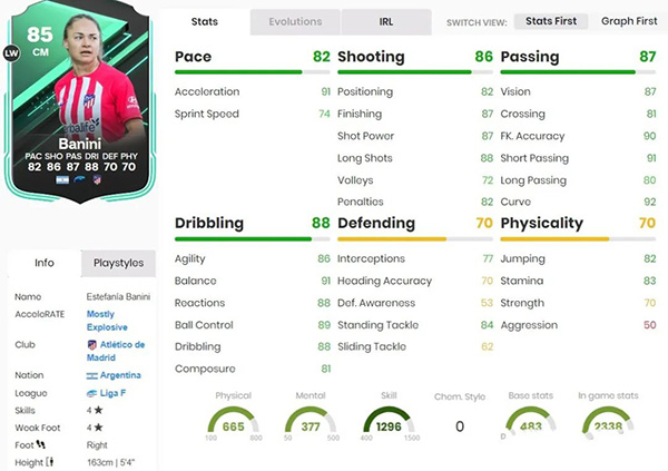 模型太小,身体对抗差。可以打个 CAM. 5万多的价格,不推荐做。缺 CAM 就做月最佳麦迪逊。周黑和活动卡已经有不少女足球员了,真心希望 SBC 就别再出女足球员了。