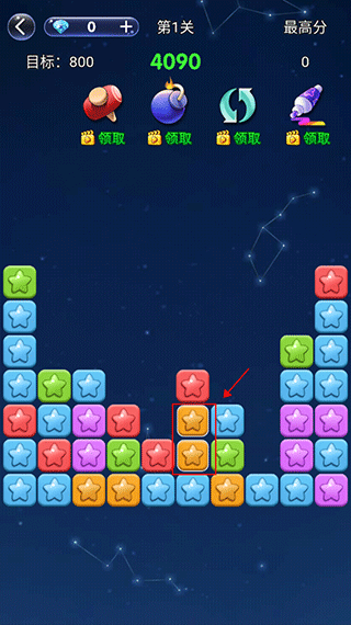 1、玩法超简单,消除相邻的2个或以上的同色星星。