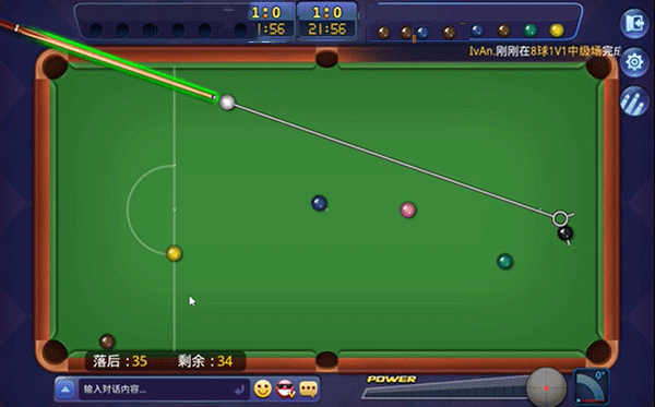 -而左边的力度表代表了击球的力量大小,上下滑动即可调整,是猛抽翻袋,还是轻碰入洞,任你选择;