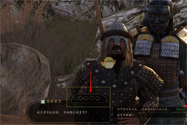 1、进入骑马与砍杀战团游戏后完成收集龙旗任务,返回主城后与龙旗NPC对话。