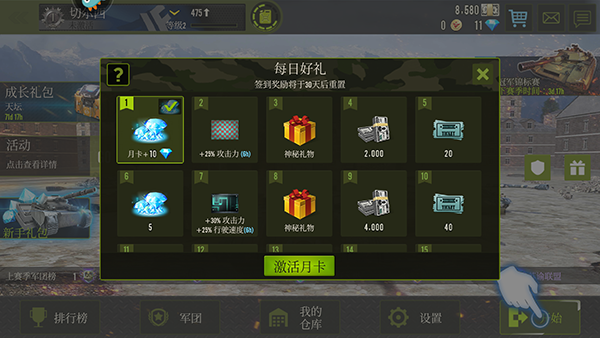 长时间持续游戏,每日上线领取奖励,可以逐渐累积大量的军费。