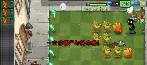 然后是豌豆射手+火炬树桩,玩家们也可以尽可能选择多的豌豆射手,再搭配上一行的火炬树桩,攻击力增强。还有前排记得配合上玉米投手,能够延缓僵尸进攻速度。