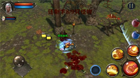 2、游戏的操作比较人性化,模拟摇杆加上虚拟按键控制角色的移动和攻击;
