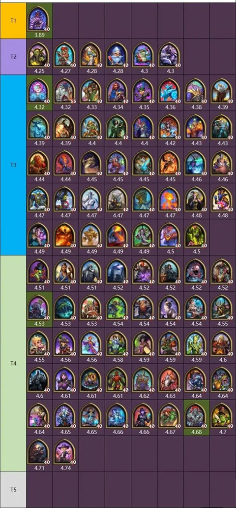 T2:伟大的阿卡扎曼扎拉克(4.25),伊妮·积雷(4.27),厨师曲奇(4.28),米尔豪斯·法力风暴(4.28),菌菇术士弗洛格尔(4.30),奥拉基尔(4.30)