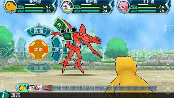 游戏的战斗方式似空之轨迹系列的攻击先后顺序依靠数码暴龙自身的SPD决定的SRPG的半回合模式,使用强力技能后会排在较后的位置,战斗中进化的数码暴龙能力会有大幅度的提升,而且进化后使用技能消耗的SP不算在退化后的SP中,所以一旦遇到体积较大的暴龙时果断选择进化与之战斗吧。