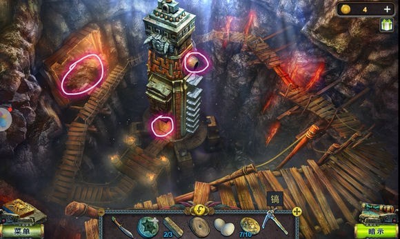 3、石圆盘——放石滚筒——完成游戏,进入萨满神庙