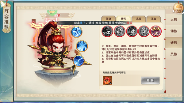 昆仑副本分为九层,每一层都有九关等你挑战,每闯关一层,都将获得大量金币以及升灵露水。点击侍从进入到升星界面,可以使用升灵露水为侍从升星,为侍从带来强大的战斗提升!闯关的层数越高,获得首次通关会获得双倍奖励,通关之后的关卡可以选择扫荡快速获取奖励。