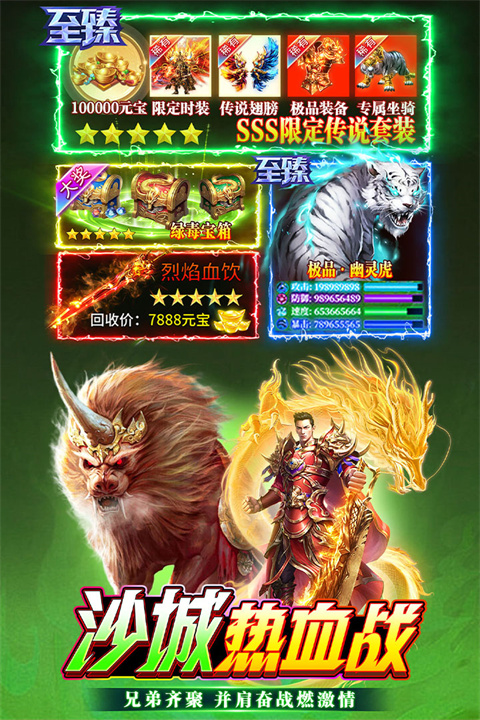 2、兄弟情义:兄弟齐聚,依旧热血;抢怪夺宝,浴血奋战,决战沙城,王者加冕!