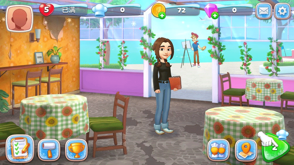 6、玩家可消耗金币购置餐厅装饰,将餐厅装扮得焕然一新。