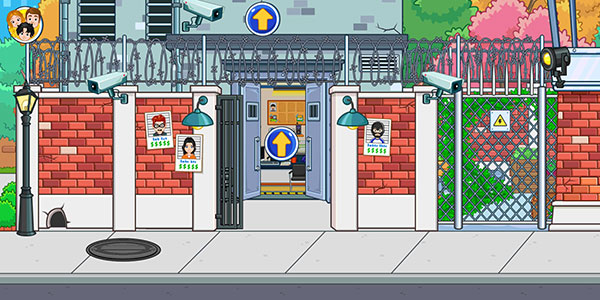 1、打开我的城市监狱游戏,我们点击监狱大门处的箭头即可进入监狱。
