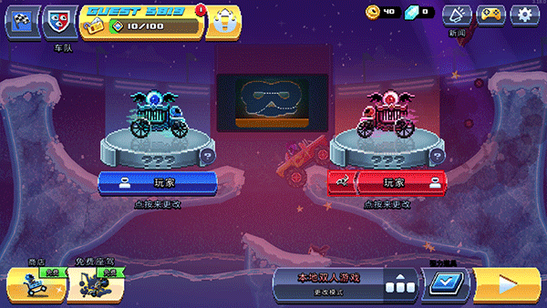 2、你可以在四种模式下玩撞头赛车:用同一台设备或无线网络,跟朋友在本地多人模式中进行双人竞赛;