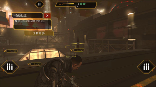 2、游戏默认采用传统的双摇杆进行操作,玩家也可以通过触屏点击进行移动,点击场景中的掩体还可以进入掩体模式。游戏还提供了丰富的设定以满足玩家对操作和键位的个人化设定。