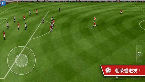 4、在训练场中玩家可以选择自由训练也可以选择训练角球、任意球等定位球战术,对于第一次进入游戏的玩家来说训练场是一个不错的熟悉游戏操作的地方,玩家在左下角的时候拖动虚拟摇杆可以控制球员的移动,而右侧的A、B、C三个按键根据进攻和防守状态下都有不同的功能,玩家可以在控制界面中查看到相应按键的功能。