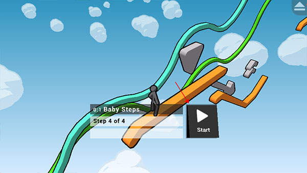 玩家要帮助角色安全的到达终点并过关,值得一提的是随着游戏的进行,火柴人会变得越来越快,而且画面中的地形也会越来越复杂,玩家一个不留神就坠落悬崖。