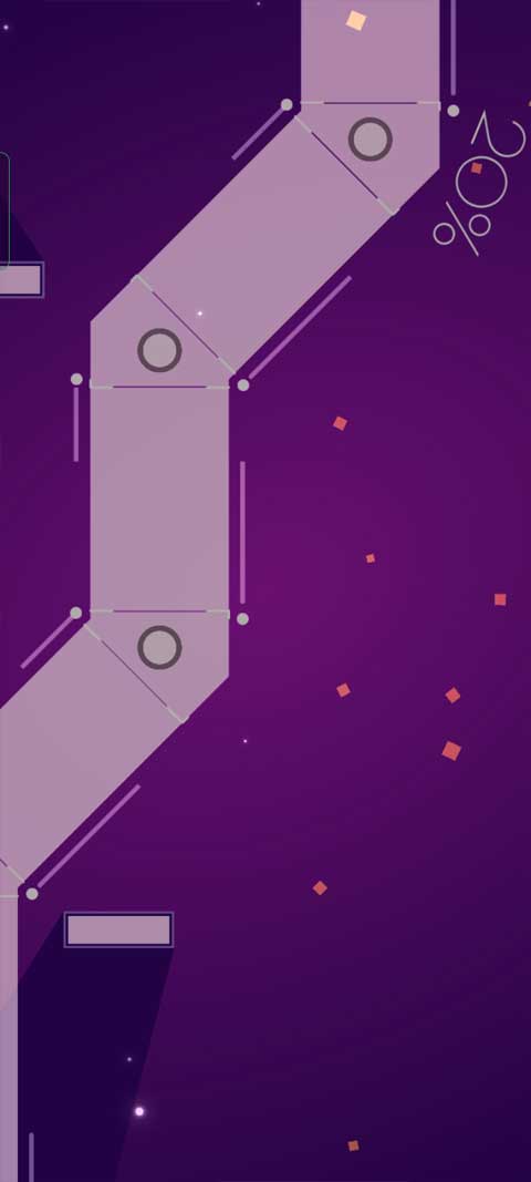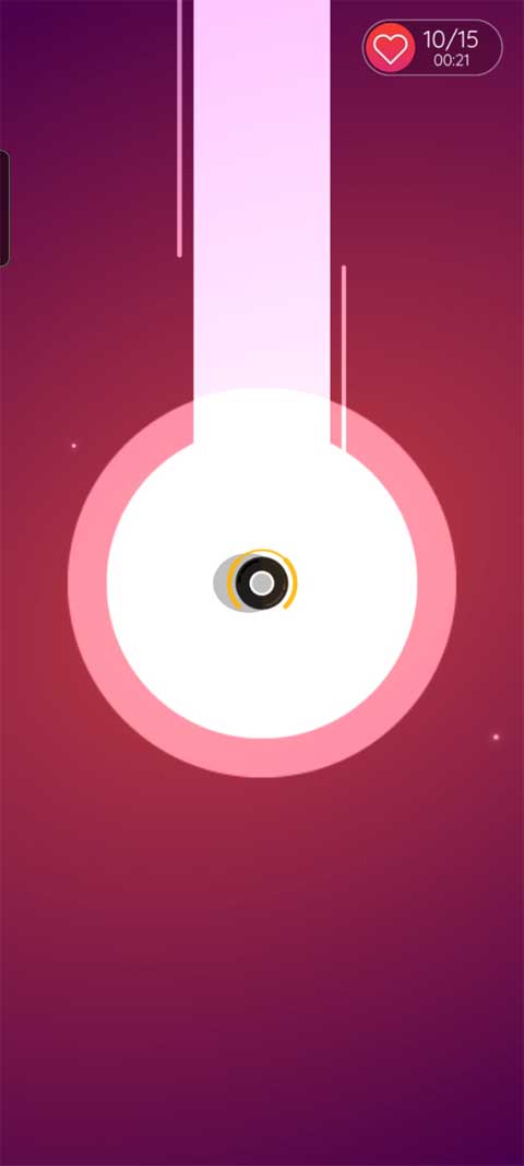 1、打开游戏之后你会发现圆圈中间只有一个小球,点击屏幕小球就会自动移动。玩家需要做的就是当小球经过这些转折点时点击屏幕,一定要在小球到达地上的白圆圈时点击屏幕,这样才会自动转变方向。