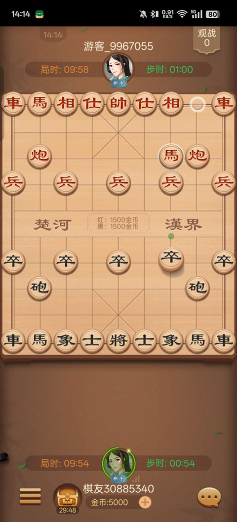 2、然后开始匹配,确定完金币的赌注就可以开始下棋了。