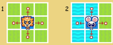 - 狮子和老虎可以用跳过小河的移动来吃掉敌方动物。