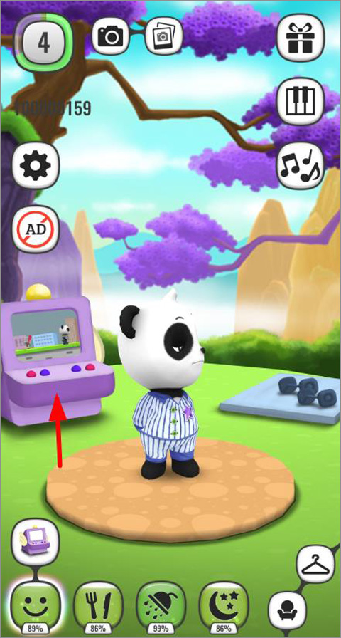 7、在游戏主页面,玩家还可点击左侧的游戏机,控制小熊猫去玩游戏;