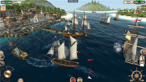 2、关于战斗方面我认为我们开炮的技术的确是不那么容易比的上电脑的,电脑只是缺乏战术,所以我推荐近战,因为这个可以用金钱碾压电脑,技能肯定是要点海盗的后续也可以点满,船的升级关于登船升级一定要升满,船舱也要升满这样就可以比较轻松的打败电脑了。