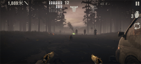 3、弹药补给:移动中经过冒绿烟的弹药箱可自动补给,但后期僵尸密集时需谨慎选择补给时机。