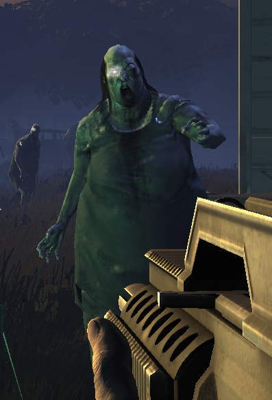 3、小胖:一个白色小背心的胖子,普通模式里最强的丧尸。好吧,满级ak一枪一个